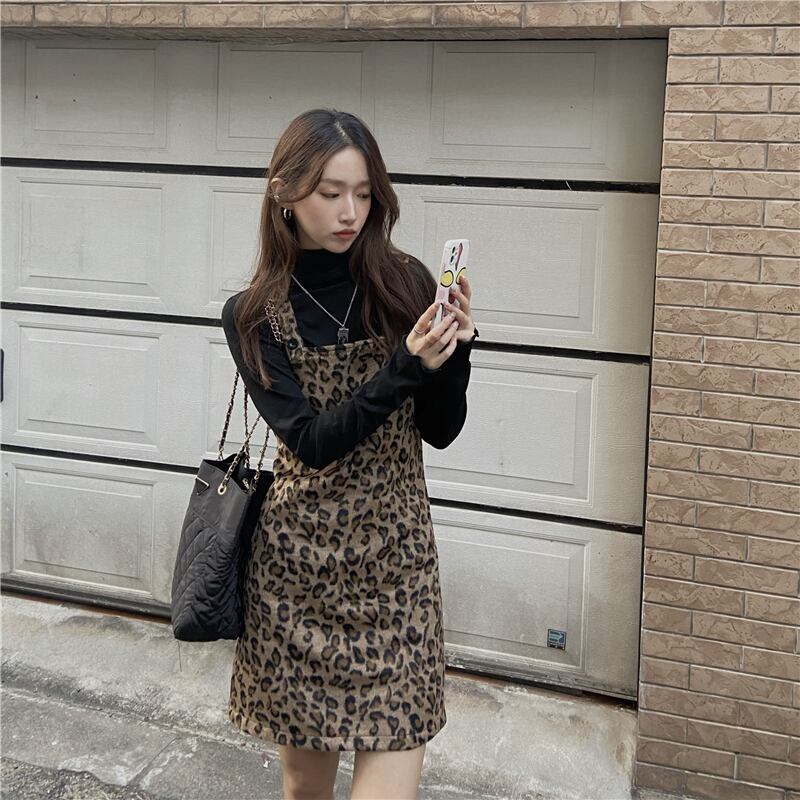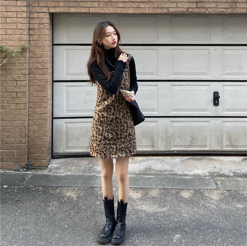 スタンダードレオパードプリント柄スカート スプリングショート薄手Aラインドレス レトロ 春物 kumikum59870558734