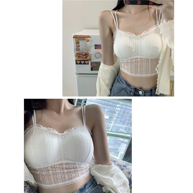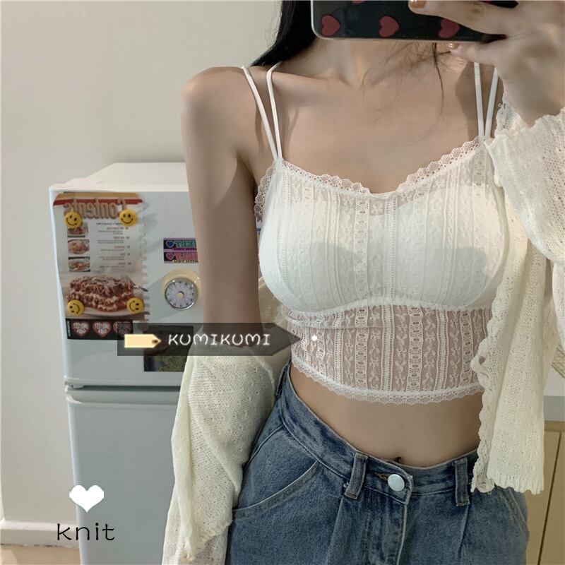 レースサイドトップス スプリングソリッド カラーバックブラ ショート レッド 春物 ソリッドカラー kumikum34835670205