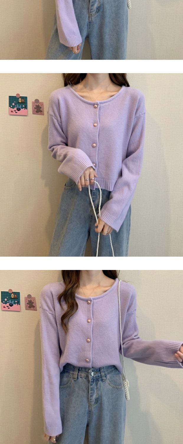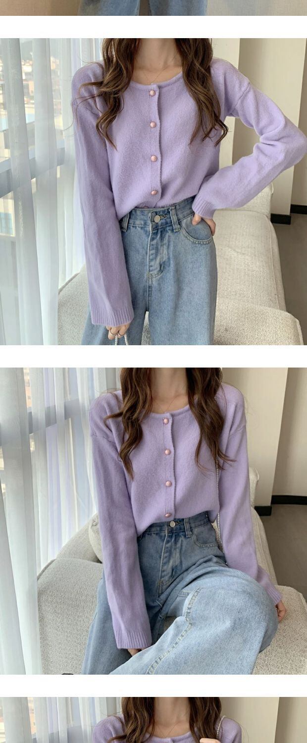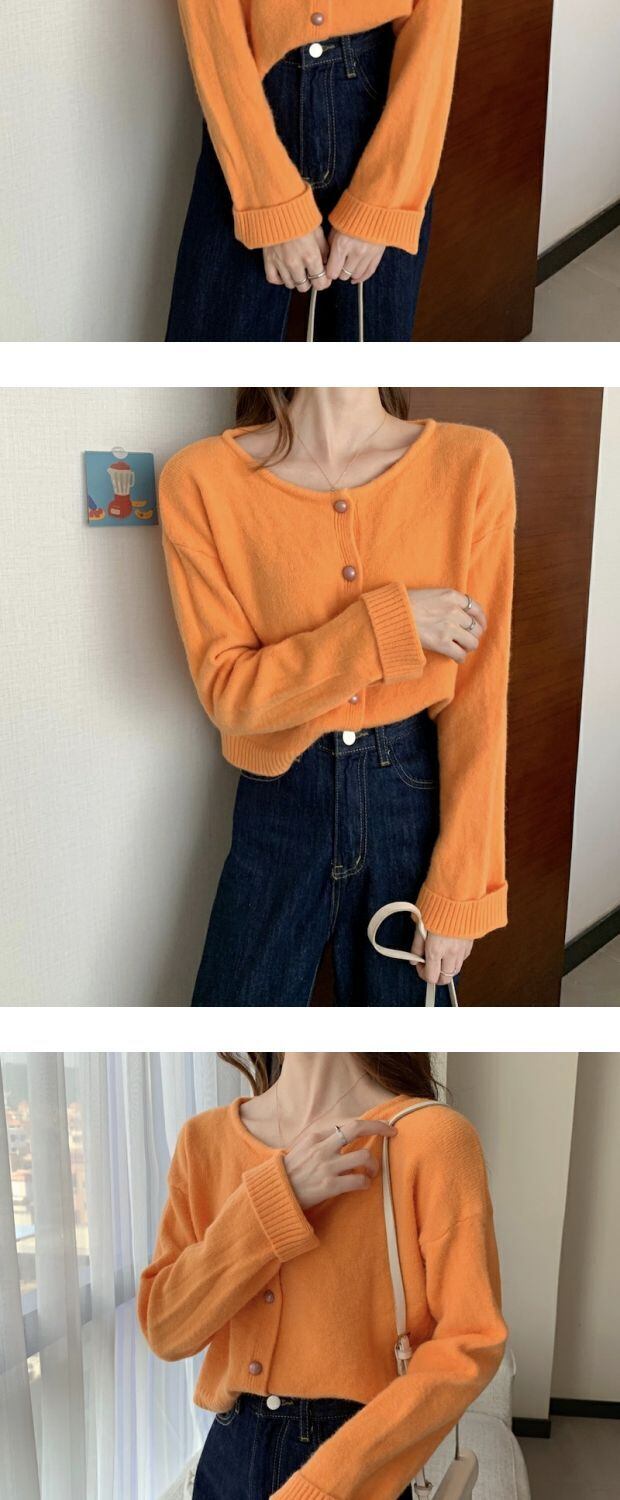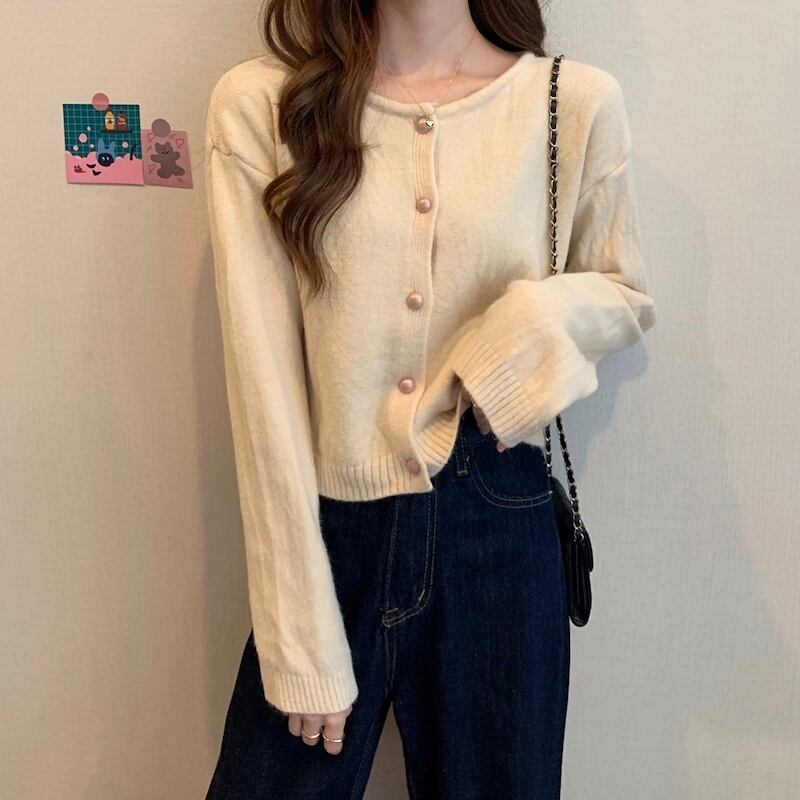 ショートセーター レディースウィンターソリッド カラーラウンドネック長袖スリーブニットカーディガントップス ロング 冬物 Oネック ソリッドカラー kumikum40965572827