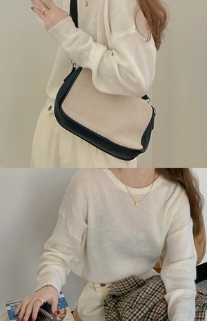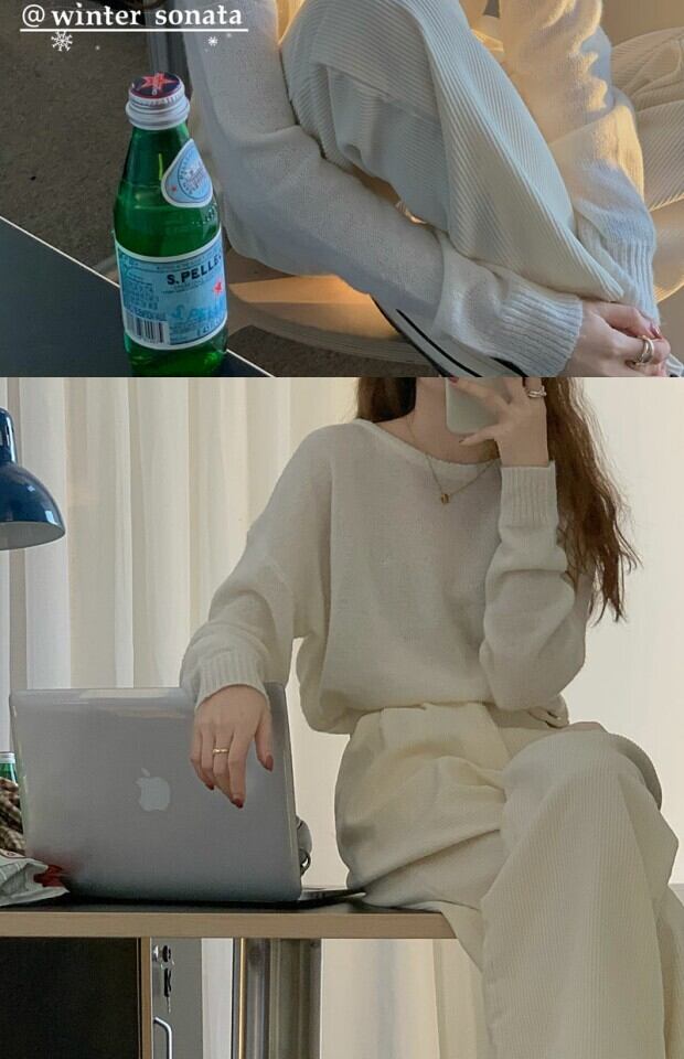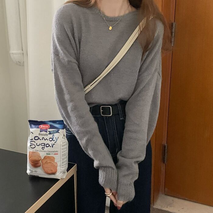 カラーラウンドネックニットセーター トップス スプリングルーズプルオーバー ロング 春物 Oネック kumikum92134293444