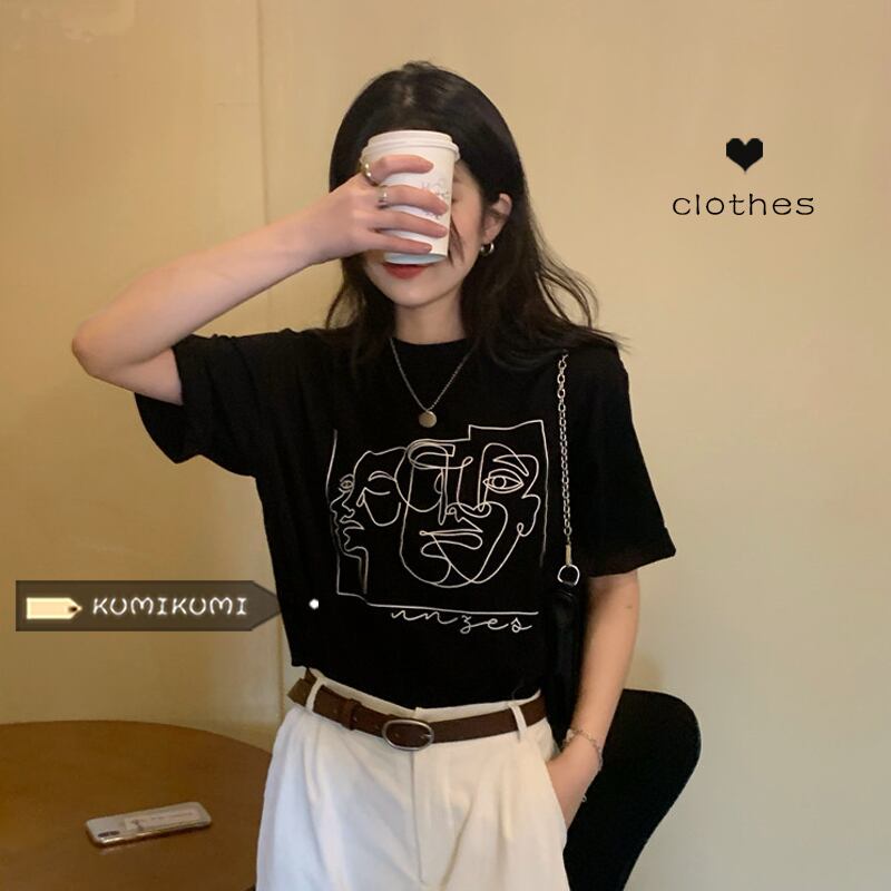 レッドラインラウンドネックシャツ トップス スプリングルーズカジュアルTシャツ 春物 Oネック kumikum76471582072