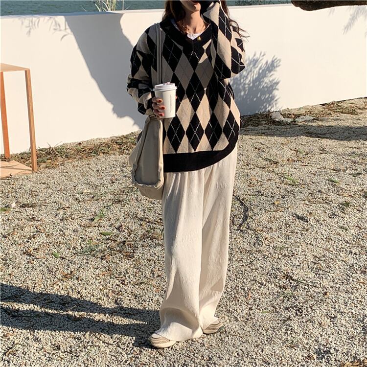 スプリングニットルーズラウンドネックプルオーバー セーター ロング 春物 Oネック kumikum27851308694