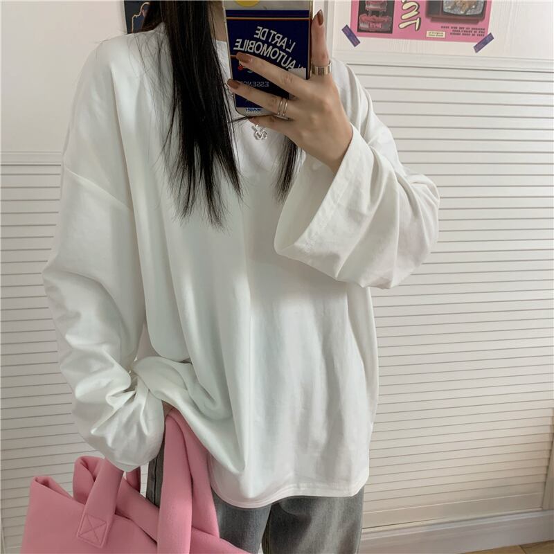 レッドカジュアルTシャツ シャツ レディーススプリングルーズトップス ロング 春物 kumikum52186226177