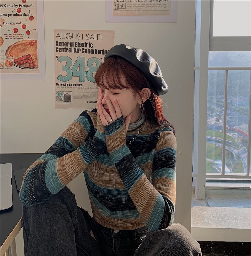 スプリングシャツ カラープルオーバー Tシャツ ロング 春物 kumikum25538398746