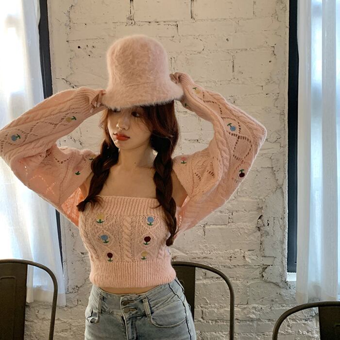 ショートジャカードセーター スプリングルーズスリーブニット ロング 春物 kumikum55611940663