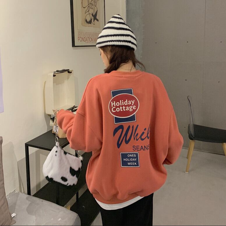 ルーズプリントセーター フードウィンターベルベットトップス 冬物 kumikum86070330572