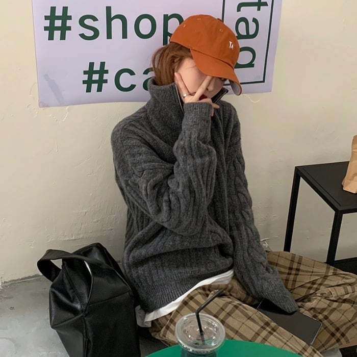 スタイルルーズジッパーセーター スプリングニットプルオーバー トップス ロング 春物 kumikum30925612672