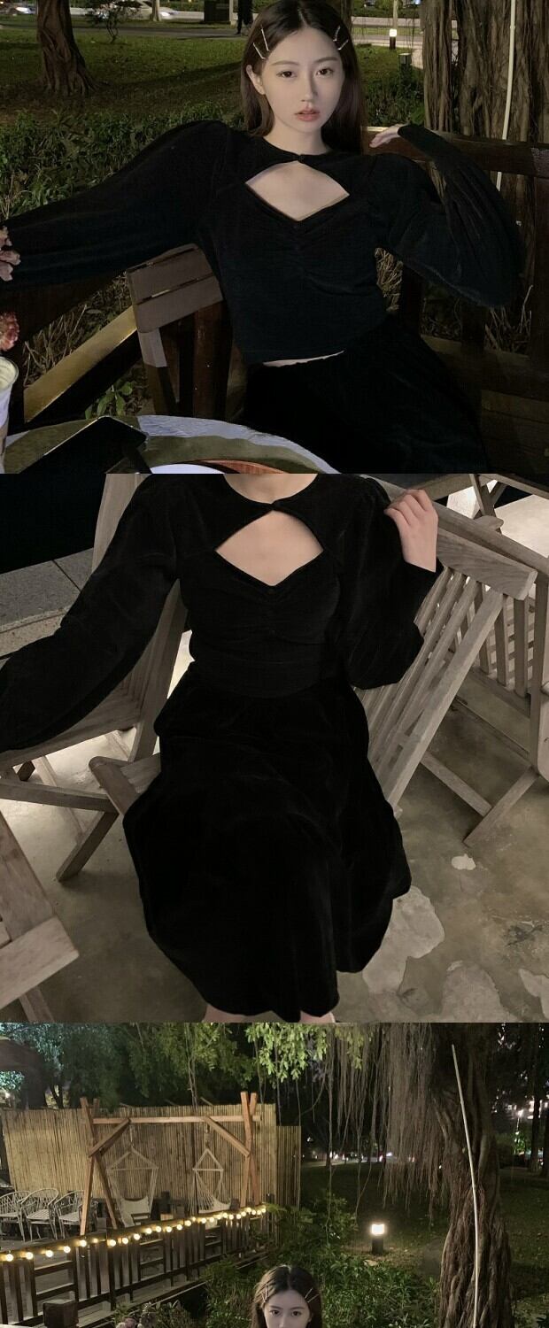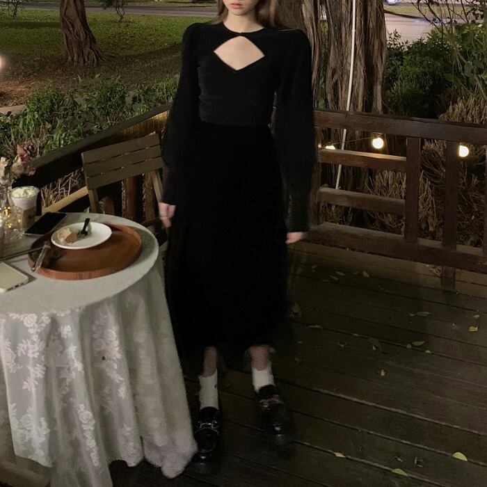 スタンダードベルベットトップス ウィンターハイウェストスカート ロング レトロ 冬物 kumikum61510370890