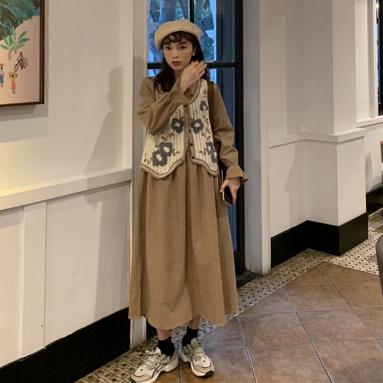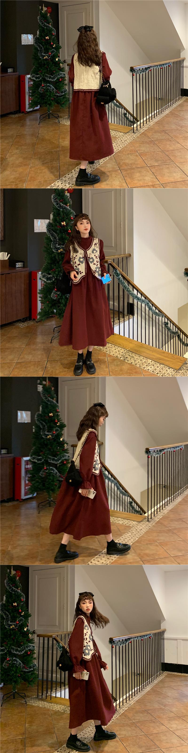 スタイルショートスプリングロングスリーブレッドドレス 長袖 春物 kumikum74810409351