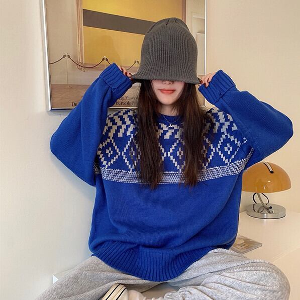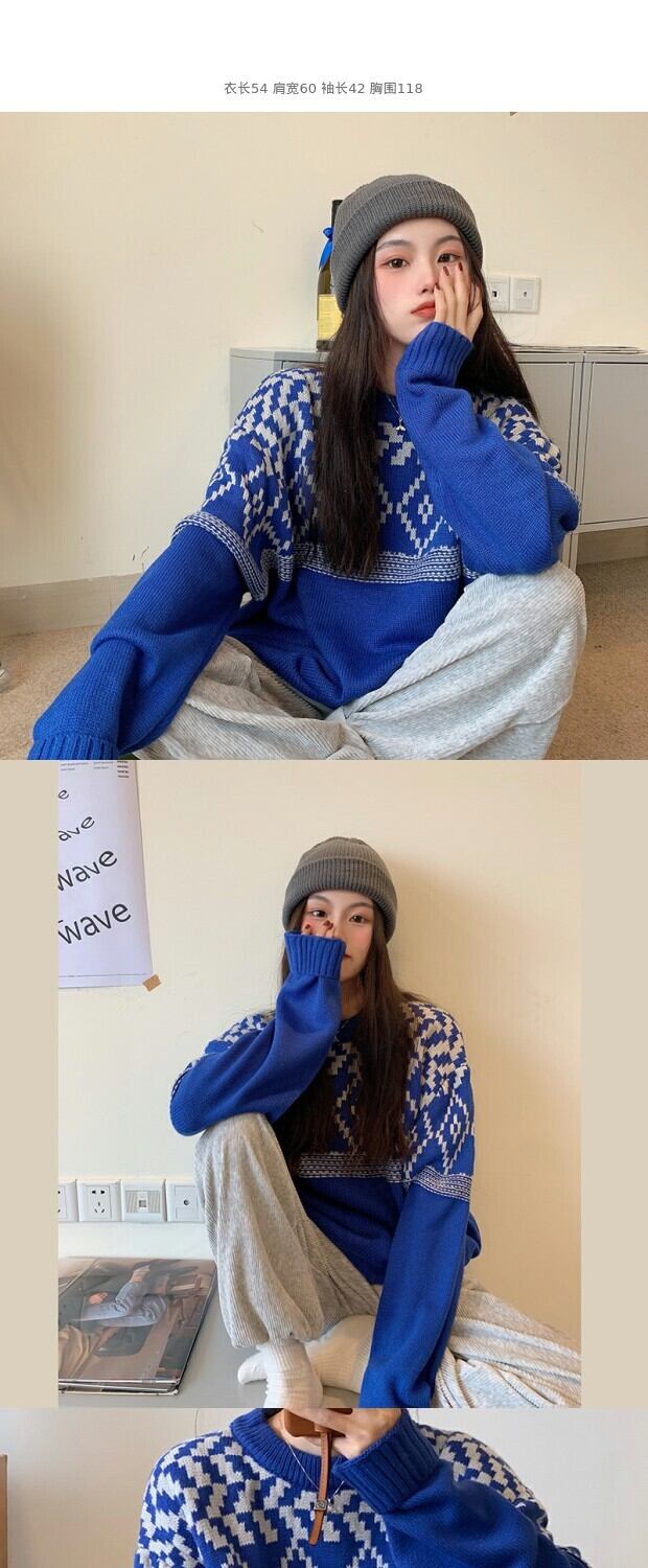 スタンダードカラーラウンドネックセーター ブラウス レディースウィンタールーズプルオーバー ロング レトロ 冬物 Oネック kumikum26778780229