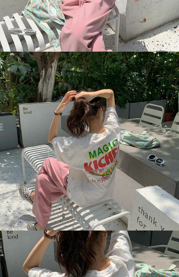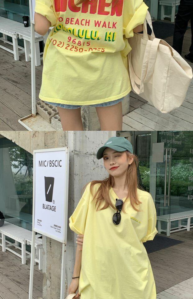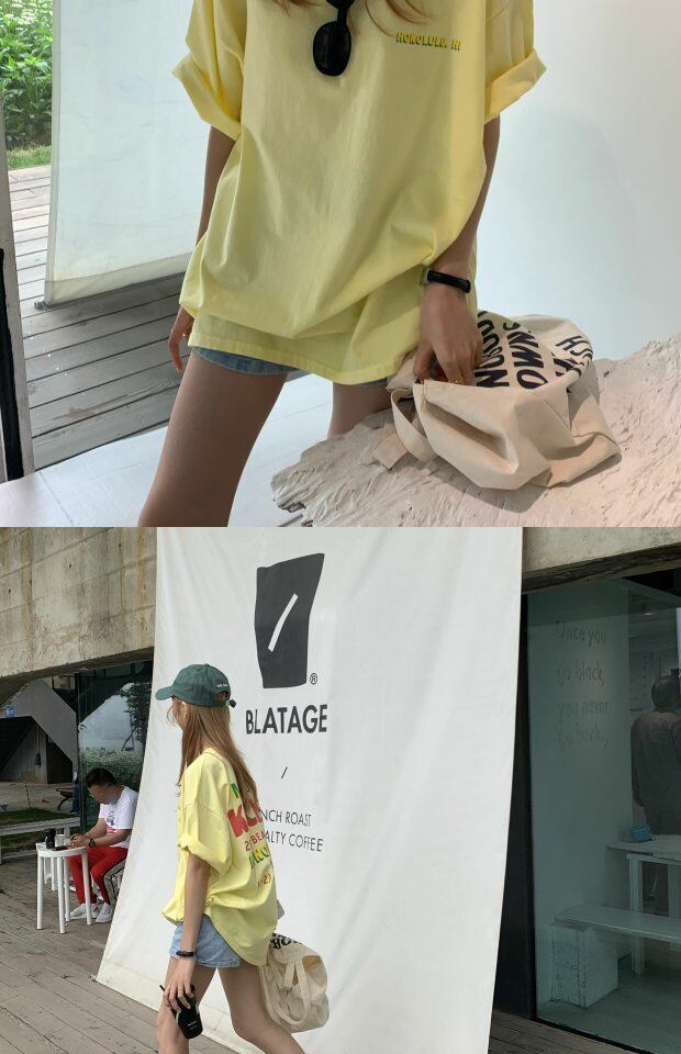 サマーカラープリントラウンドネックTシャツ ルーズトップス 夏物 Oネック kumikum48979466509