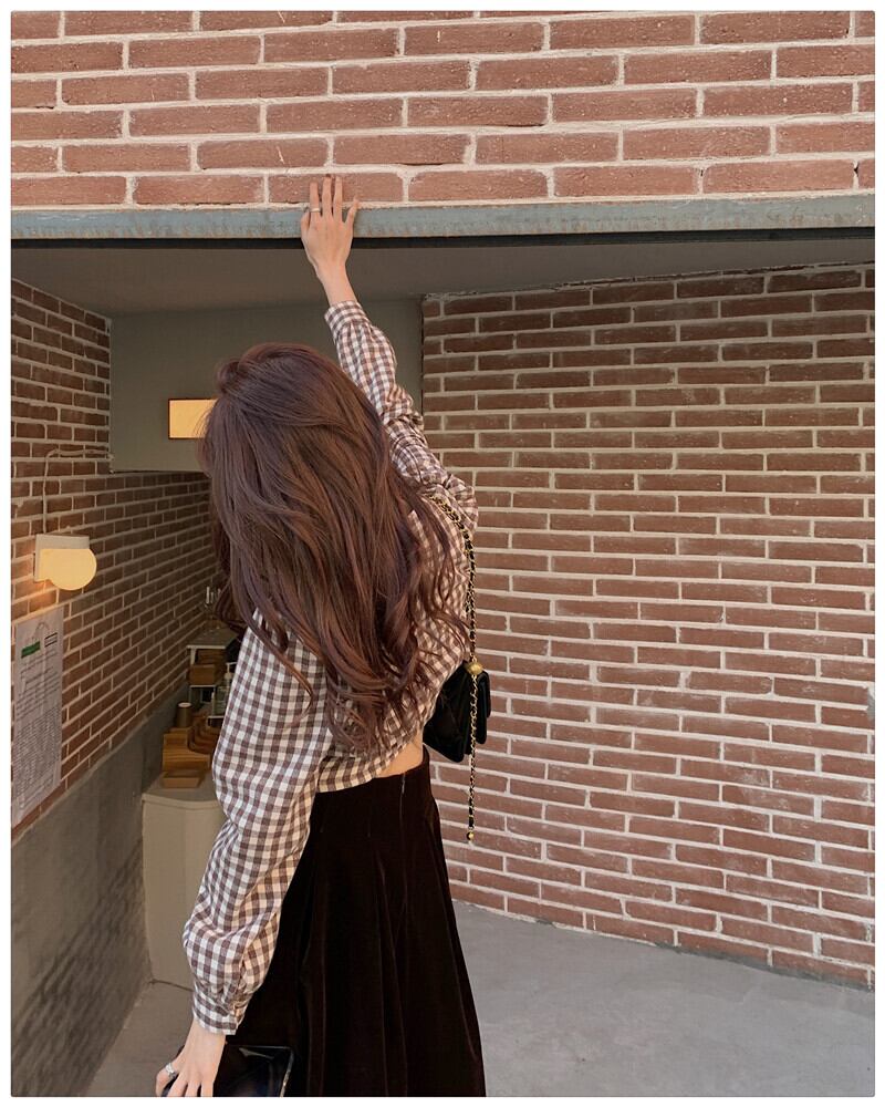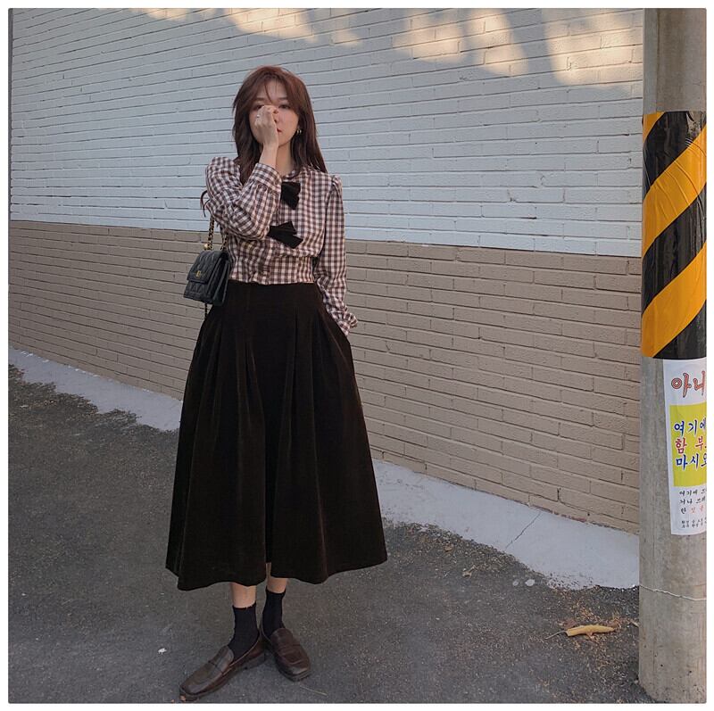 格子柄シャツ トップス スプリングベルベットスカート ロング 春物 kumikum96116847302
