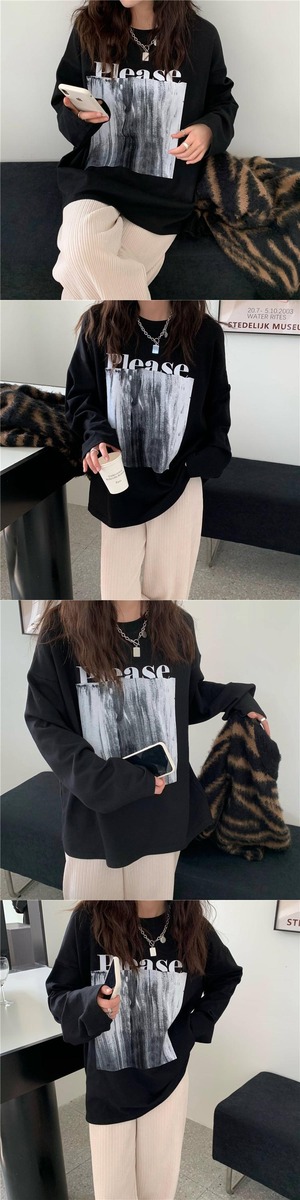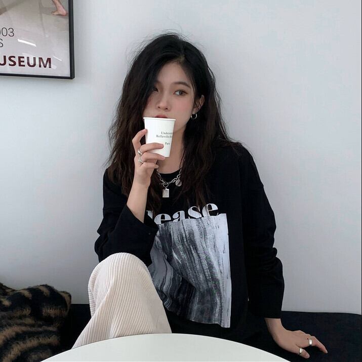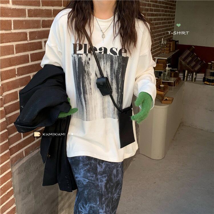 Tシャツ シャツ レディースウィンタープリントルーズトップス ロング 冬物 kumikum21552204925