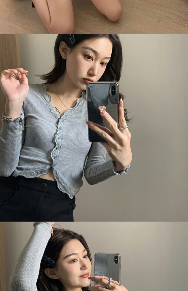 シャツ スプリングレースVネックショートニットカーディガントップス ロング 春物 ステッチ kumikum26708338382