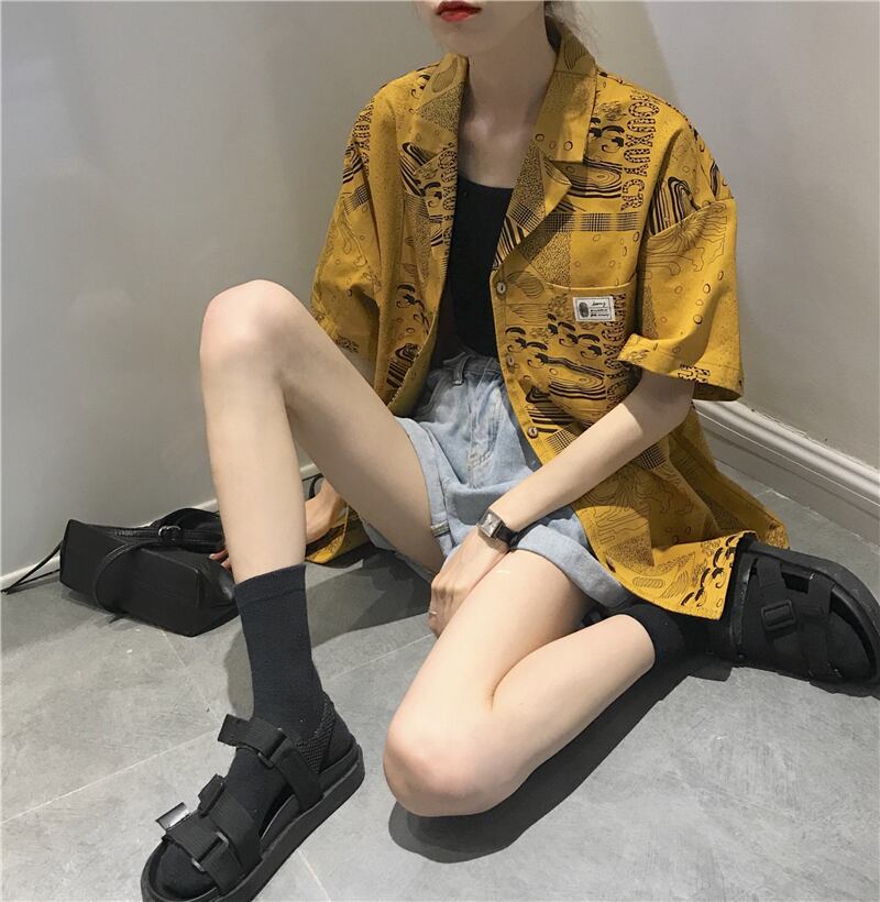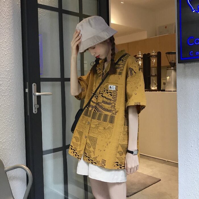 スタンダードプリントスタイルシャツ ジャケット サマールーズ レトロ 夏物 kumikum97903541193