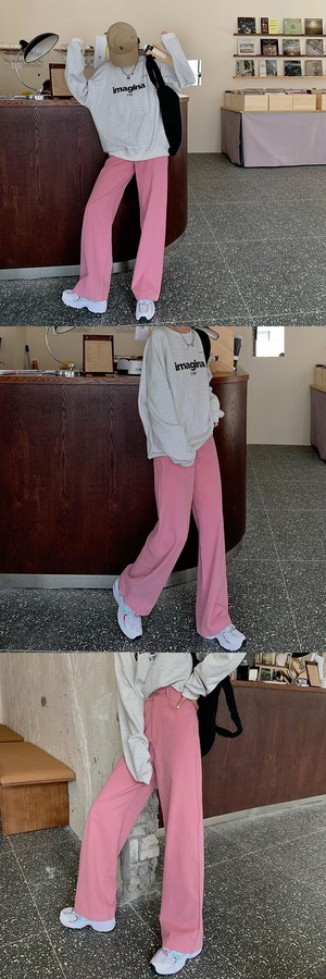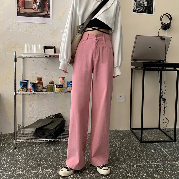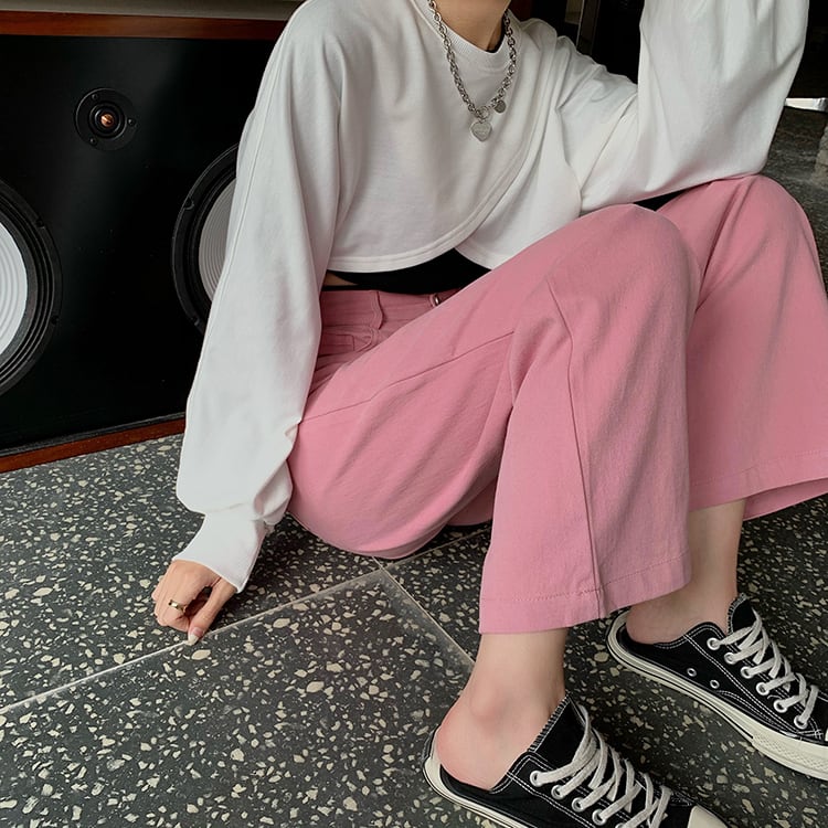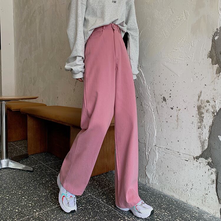 スタイルジーンズ 薄手ハイウェストパンツ スプリングルーズロング ピンク 春物 kumikum4605443443