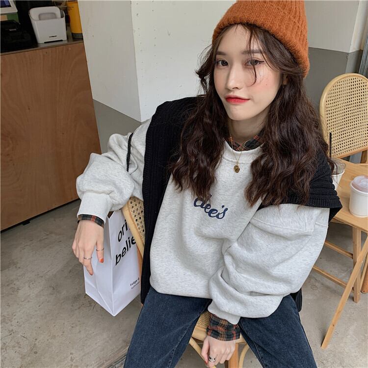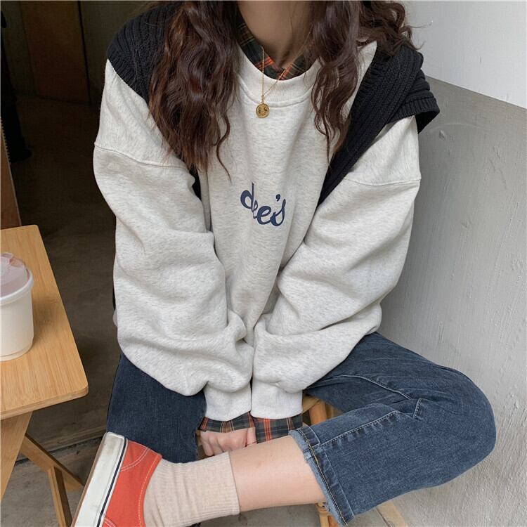 レッドプリントラウンドネックベルベットセーター ジャケット ウィンタールーズプルオーバー トップス ロング 冬物 Oネック kumikum30969348746