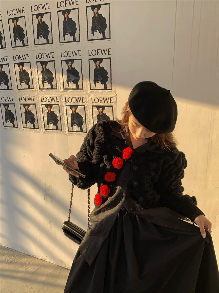色:白いセーター7617,赤いセーター7617,黒のセーター7617,598ベルベットスカート,583ロングスカート