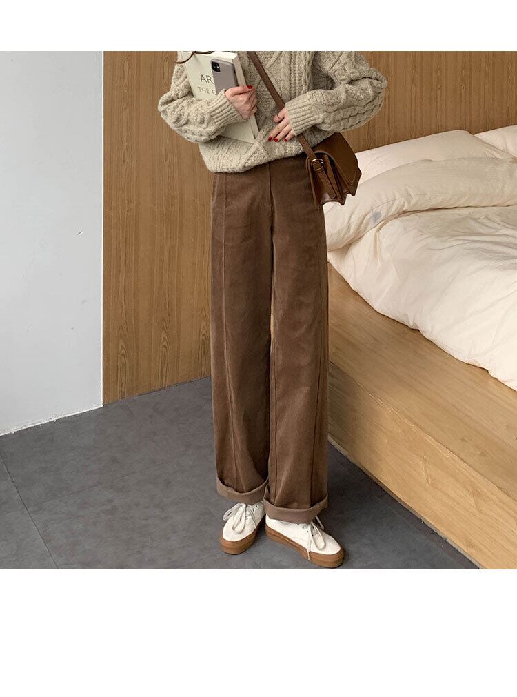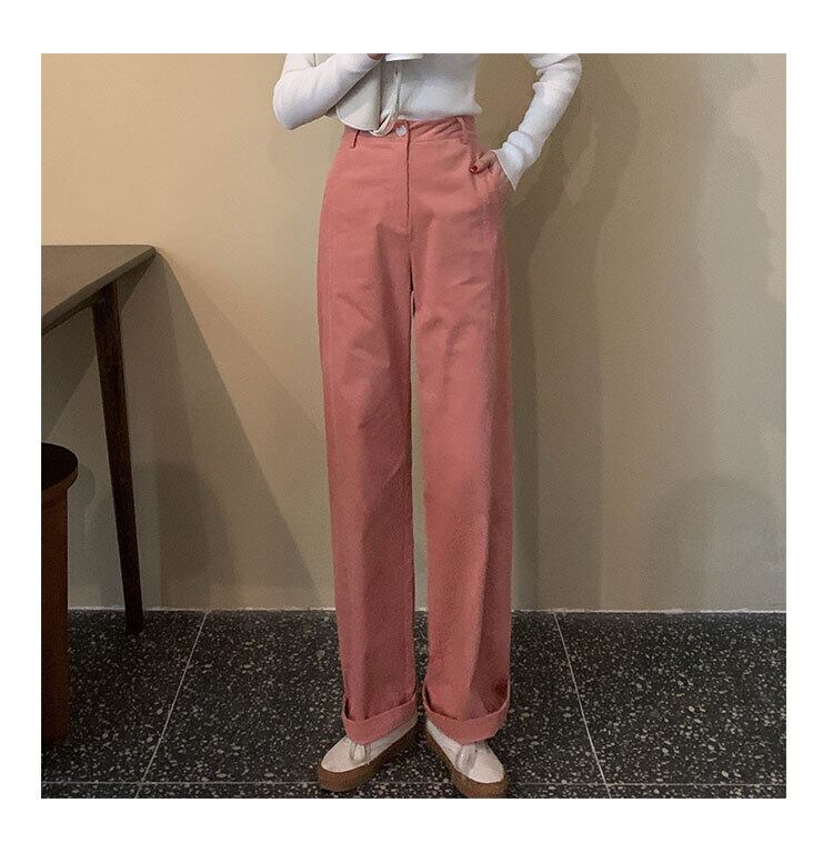 スタンダードパンツ レディーススプリングハイウェストウェスト薄手ソリッド カラーコーデュロイカジュアルルーズワイドレッグ レトロ 春物 ワイドパンツ ソリッドカラー kumikum97251758746