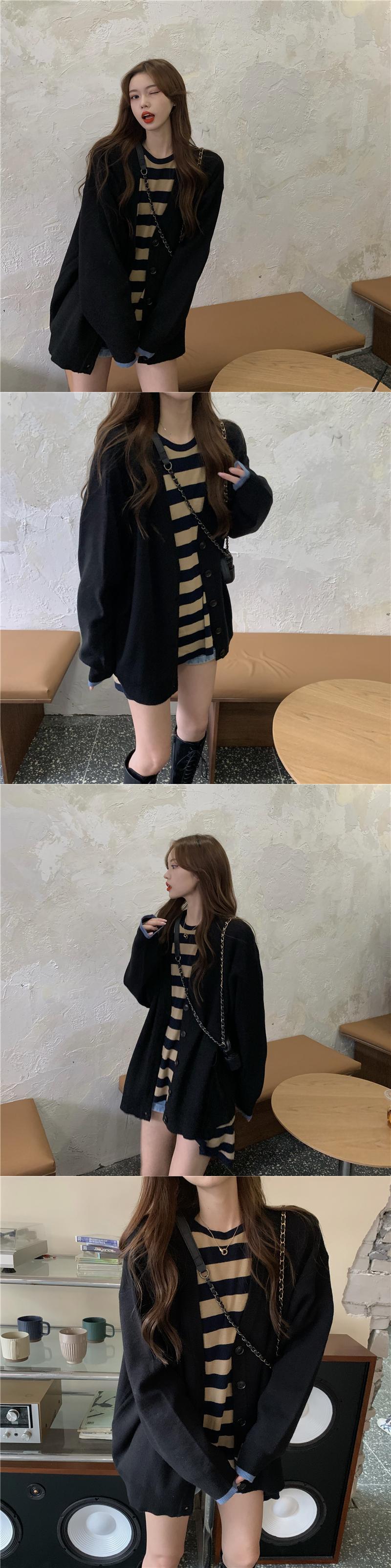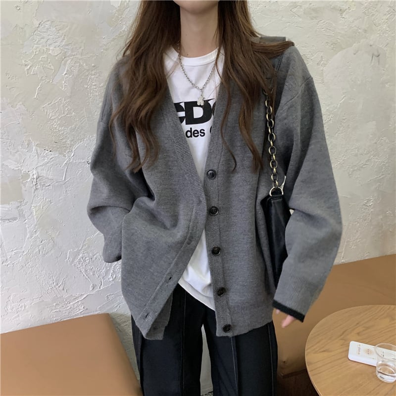 スタイルルーズVネックグレーセーター ジャケット レディーススプリングカーディガントップス ロング 春物 kumikum55419689390