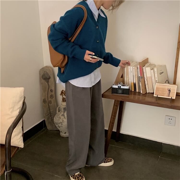 色:青いセーター,ライトカーキニット,黄色の縞模様のシャツ,ブルーストライプシャツ