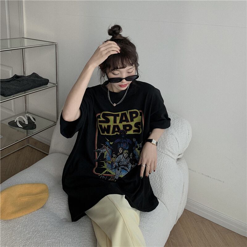 スプリングトップス レディーススタンダードロングルーズプリントラウンドネックプルオーバー 半袖スリーブTシャツ ショート レトロ ハーフスリーブ 春物 Oネック kumikum6560645312