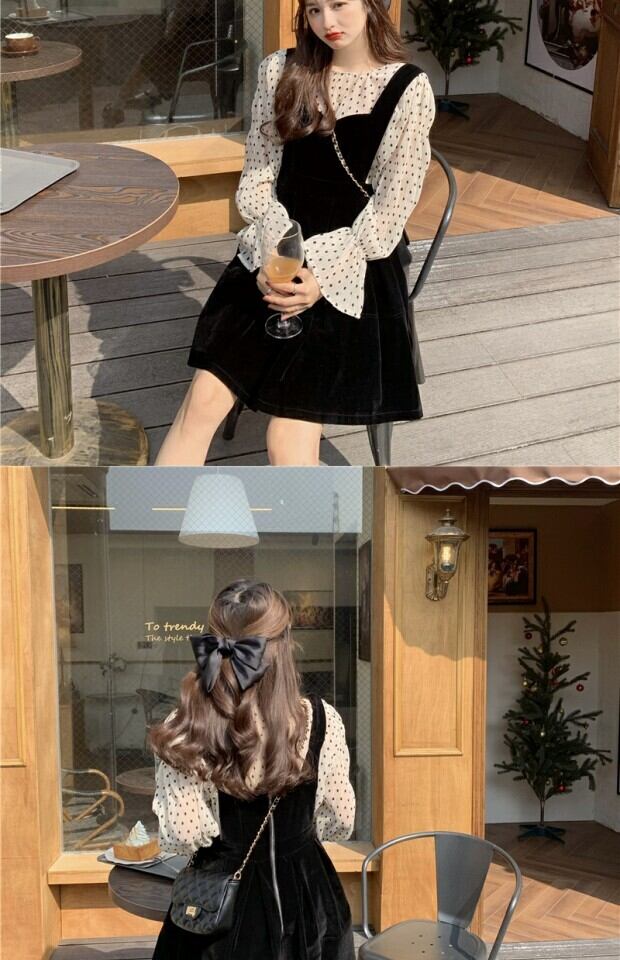 色:水玉シャツ,ベルベットスカートS,ベルベットスカートM