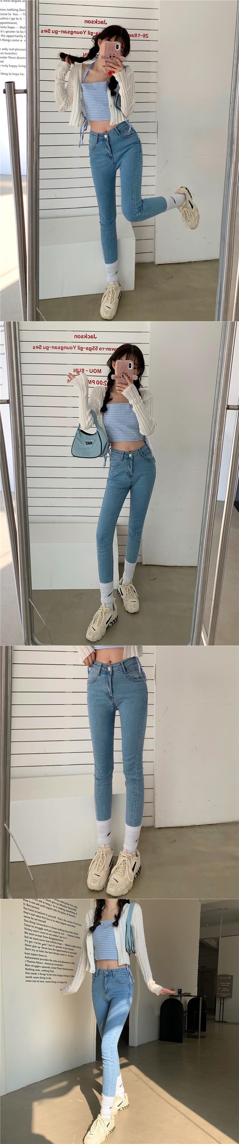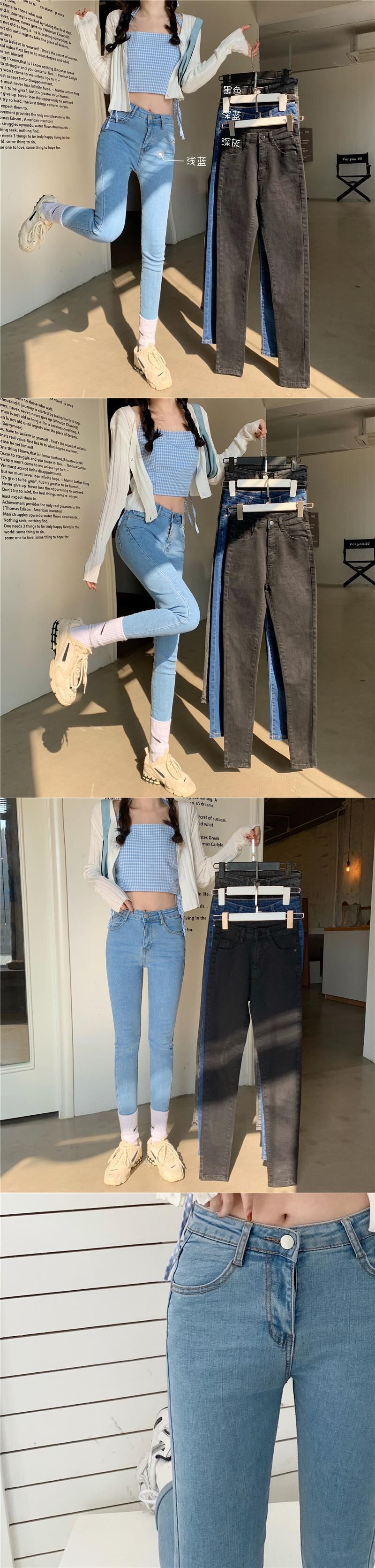 薄手ハイウェストジーンズ スプリングパンツ ソリッド カラー 春物 ソリッドカラー kumikum22879615574
