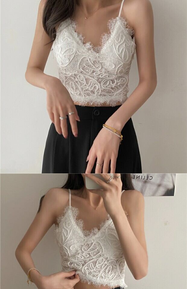 ホワイトレースサマーVネックトップス ショートノースリーブ 夏物 kumikum56143225185