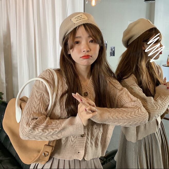 ショートVネックカーディガンニットセーター レディースウィンタースタイルルーズ長袖スリーブトップス ロング 冬物 kumikum23570461310