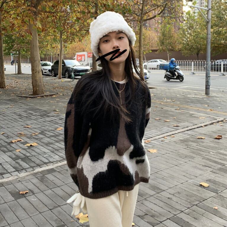 ヴィンテージカラーラウンドネックセーター ウィンタールーズプルオーバー トップス ロング 冬物 Oネック ビンテージ kumikum54139236691