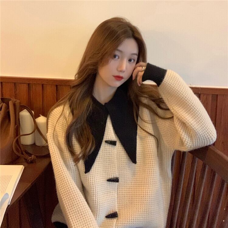 スタイルカラーバックルニットカーディガンセーター レディーススプリングルーズジャケット トップス ロング 春物 kumikum66720919603