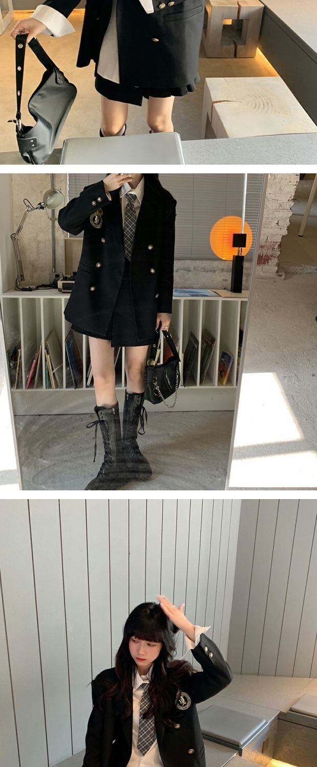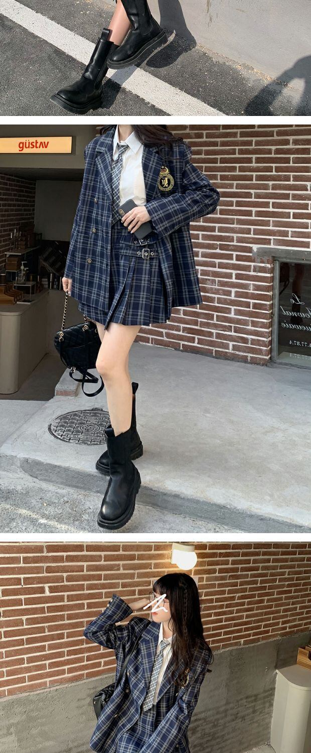 色:黒のスーツ10866,ブルーグリッドスーツ10866,黒のプリーツスカート10868,ブルーグリッドプリーツスカート10868,白いシャツ10869,白いシャツ+ネクタイ10869
