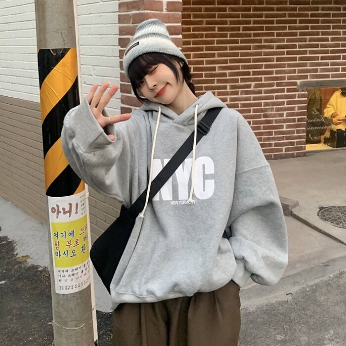 プリントベルベットフードセーター ジャケット レディースウィンタールーズプルオーバー ブラウス ロング 冬物 kumikum20030200484
