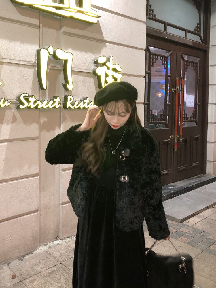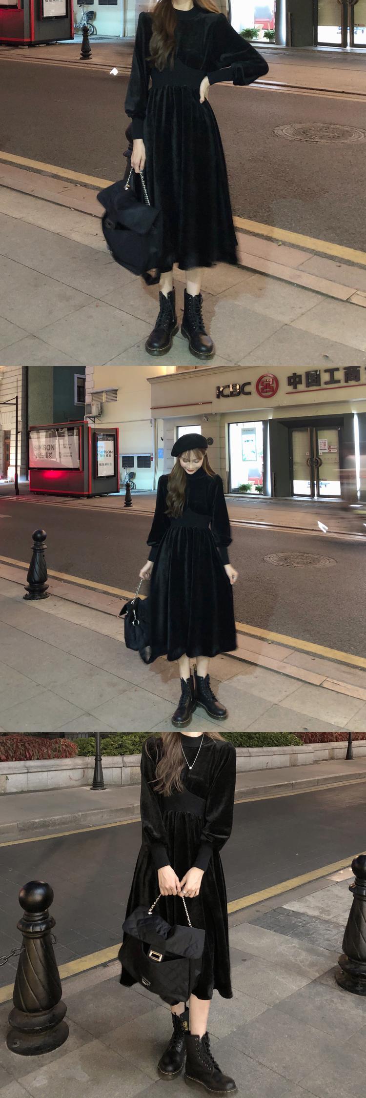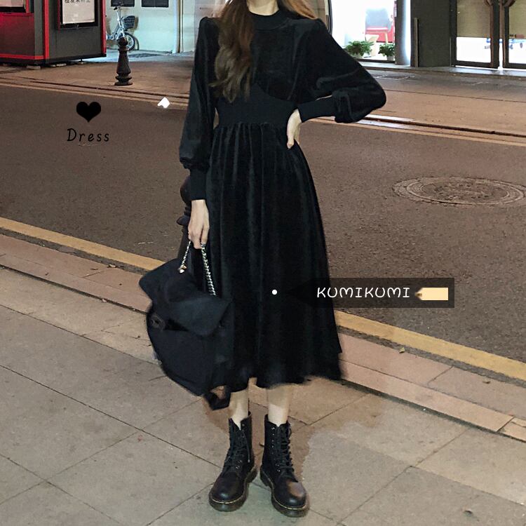スタイルブラックベルベットウェストスカート kumikum75659742579
