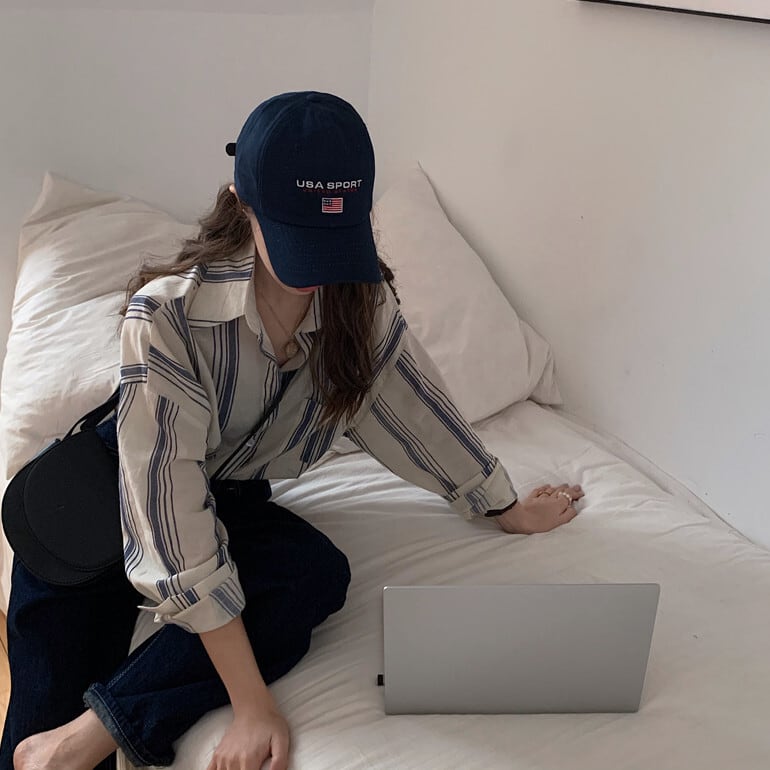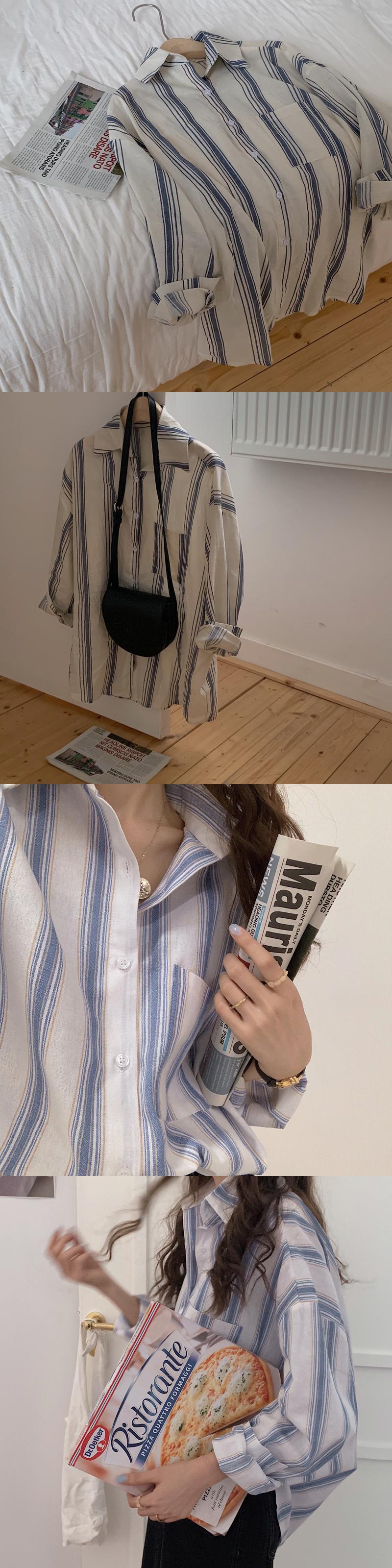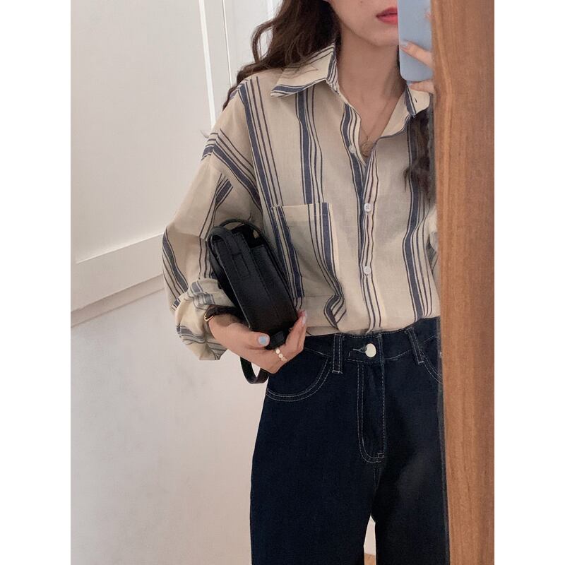 スタイルストライプシャツ スプリングルーズ薄手カジュアル ロング 春物 kumikum42884567899