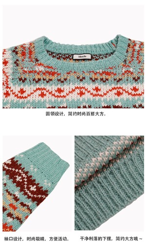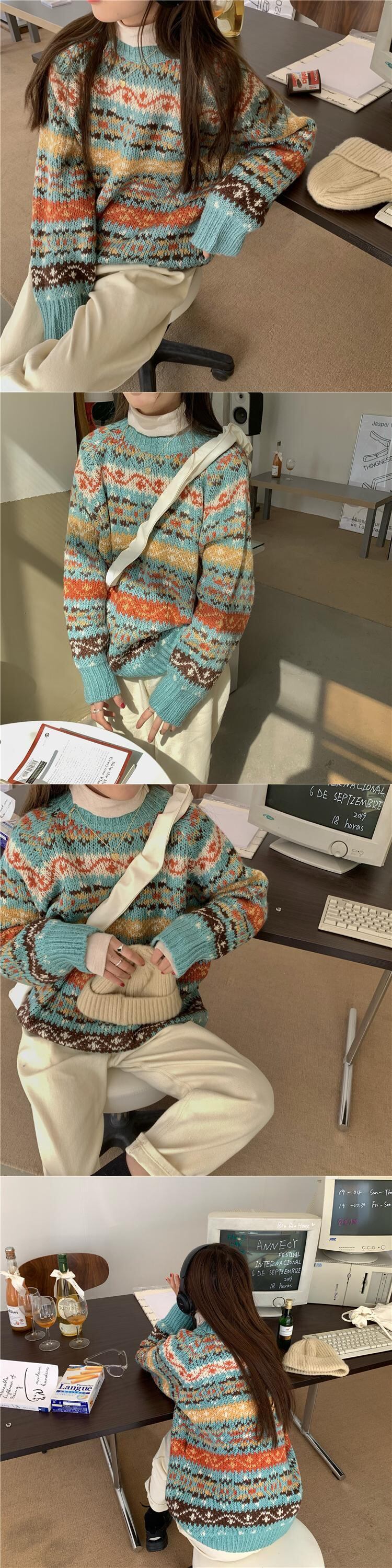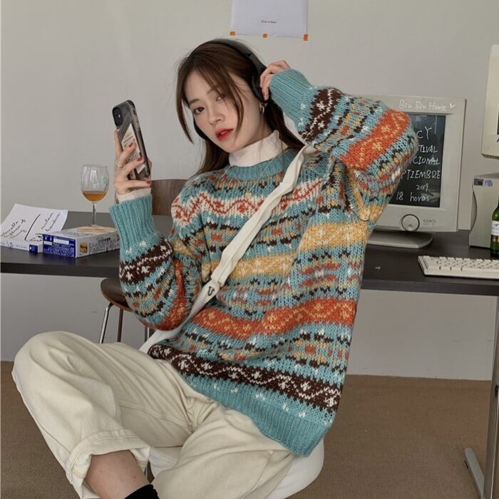 スタンダードパターンカラープルオーバー セーター レディースウィンタースタイルカジュアルルーズラウンドネックトップス レトロ 冬物 Oネック kumikum35158439716