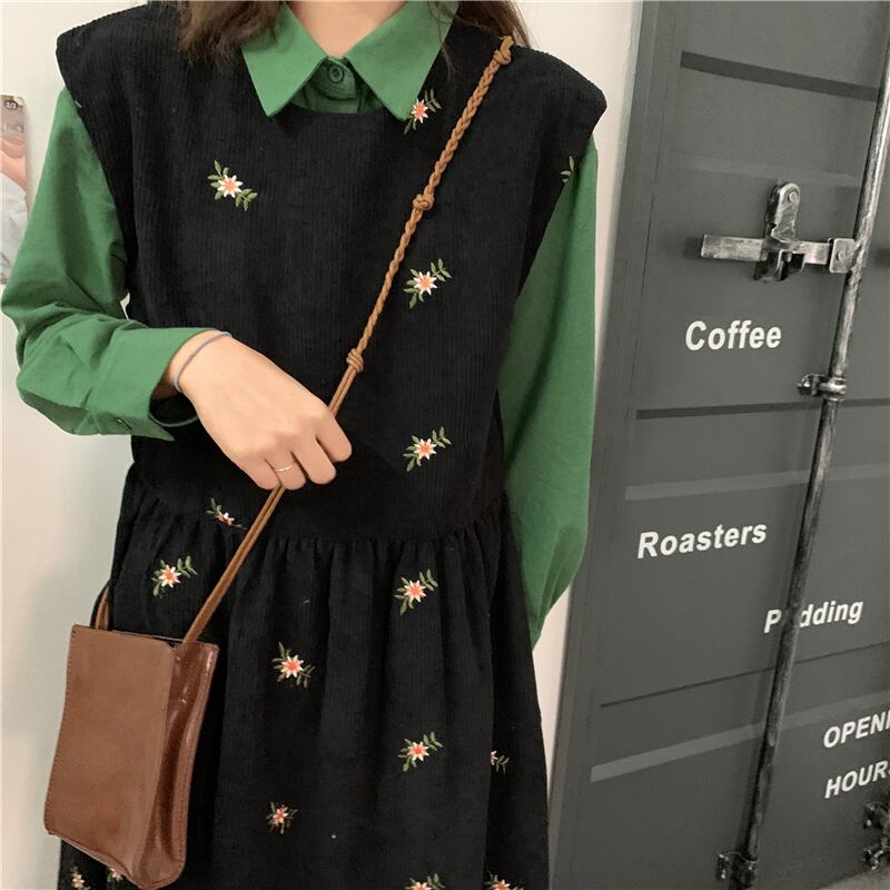 スタイルシャツ ウィンターコーデュロイドレス ロング レッド 刺繍 冬物 kumikum20912411946