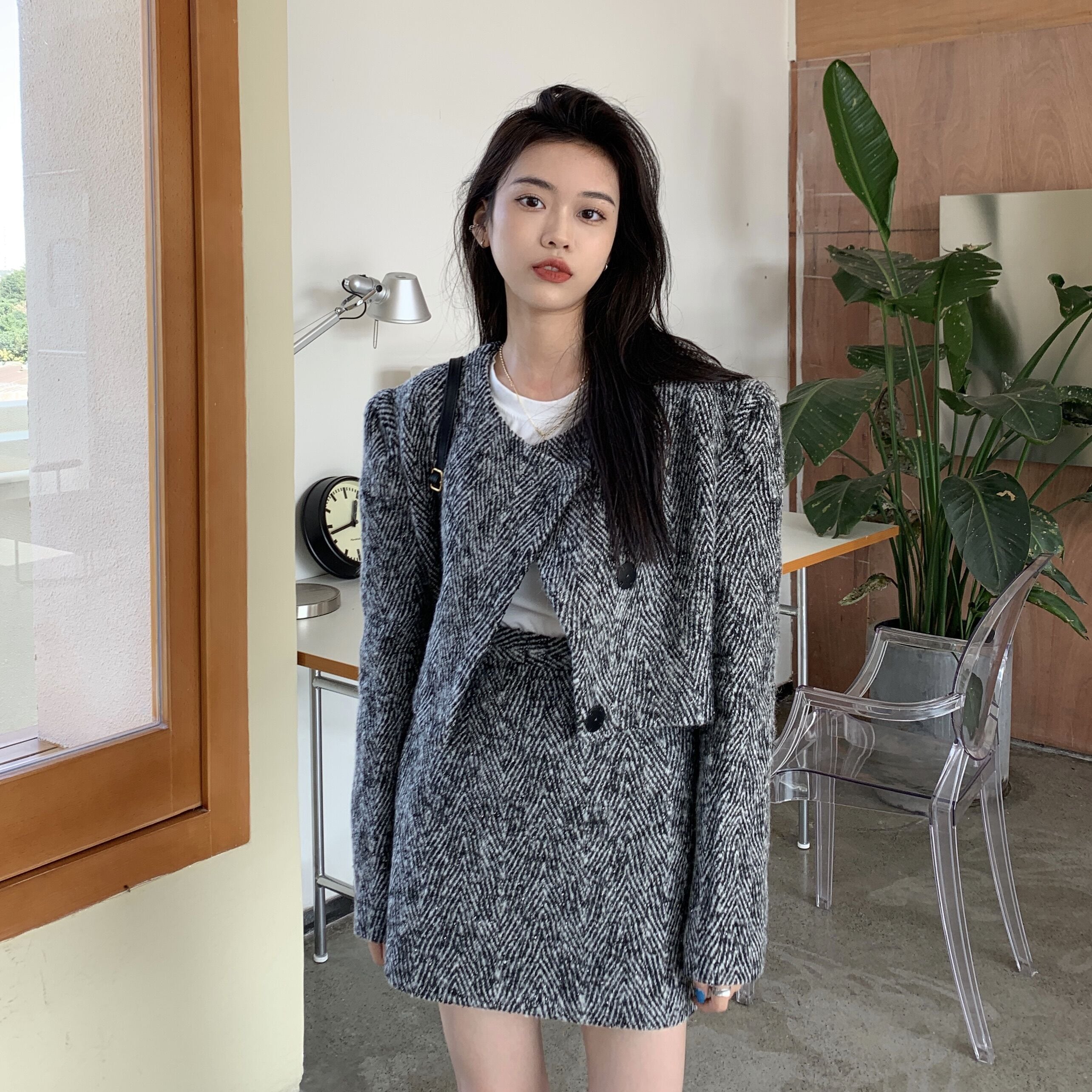 ウィンターカーディガンジャケット スタイルハイウェストウェストスカート 冬物 kumikum25906651113