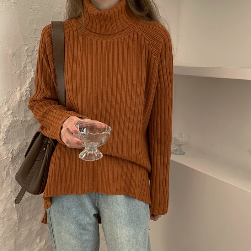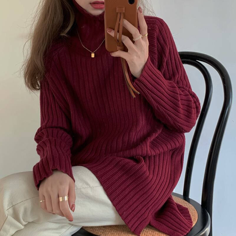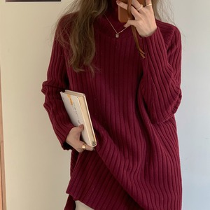ルーズプルオーバー ニットトップス レディースウィンターソリッド カラーセーター ロング 冬物 ソリッドカラー kumikum97825455167