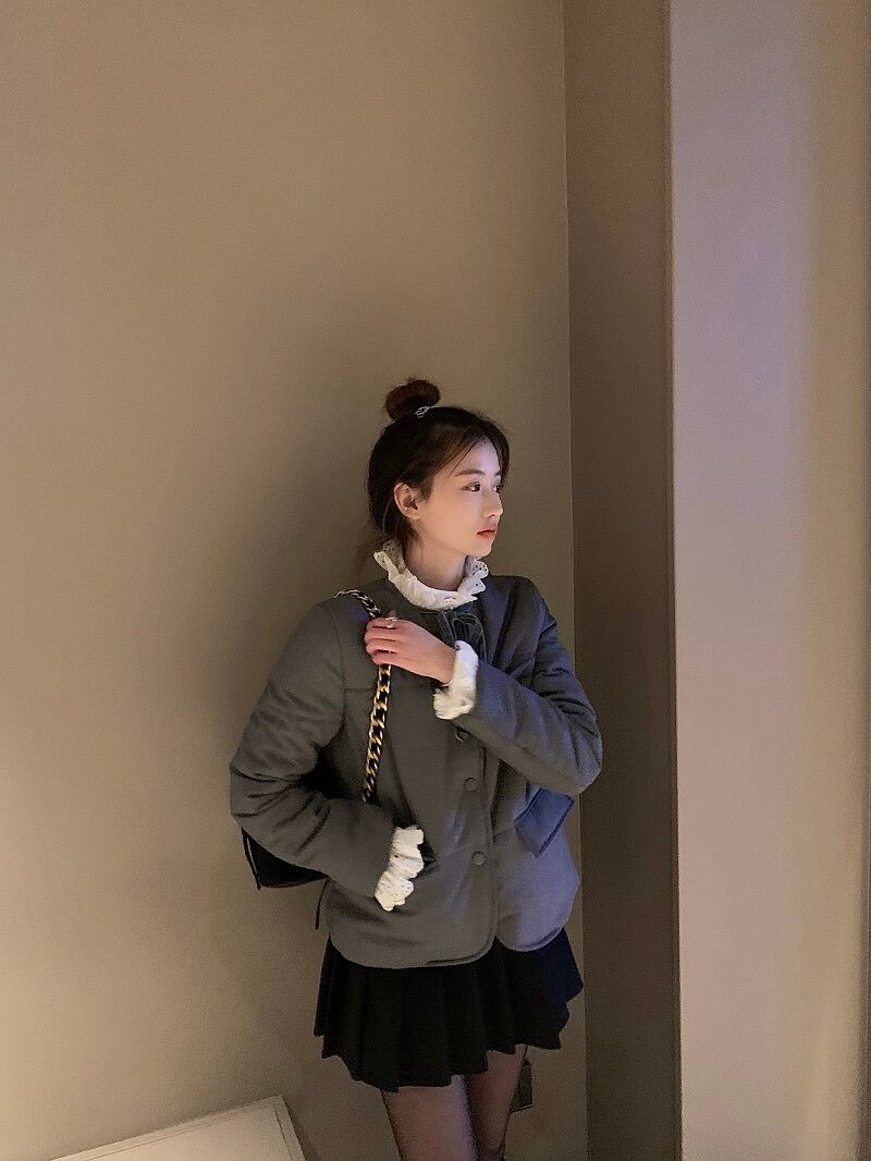 色:グレーのショートコットンジャケット,ウールスカートS,ウールスカートM,ウールスカートL