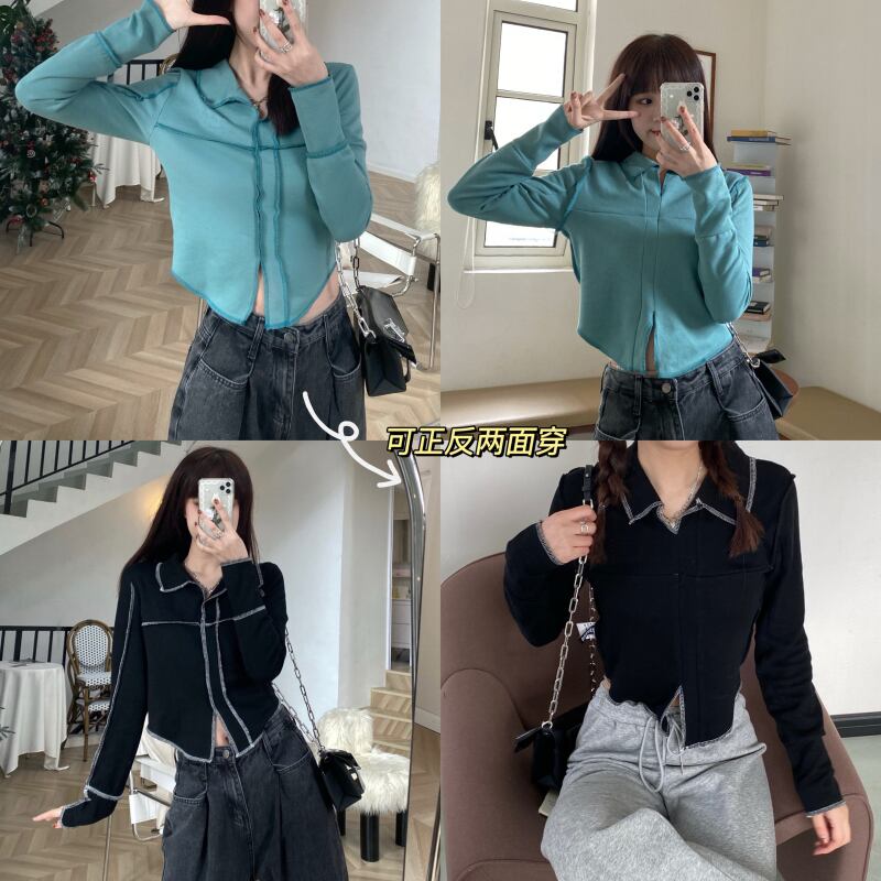 スタイルスリムブラウス ウィンターショートTシャツ ロング 冬物 kumikum64576528571