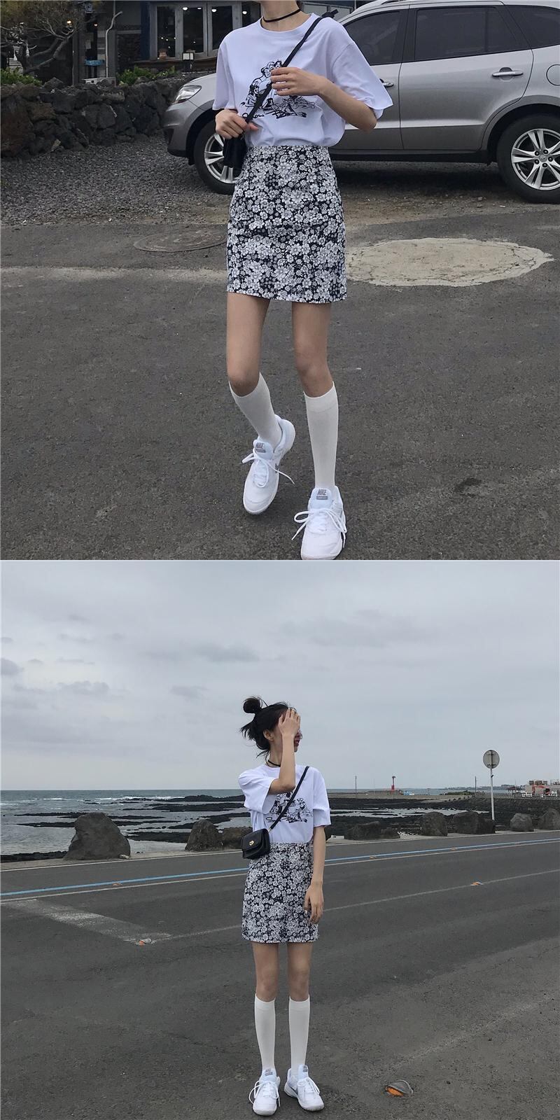 サマーハイウェストフローラルスカート Aラインショート 夏物 花柄 kumikum79503997132