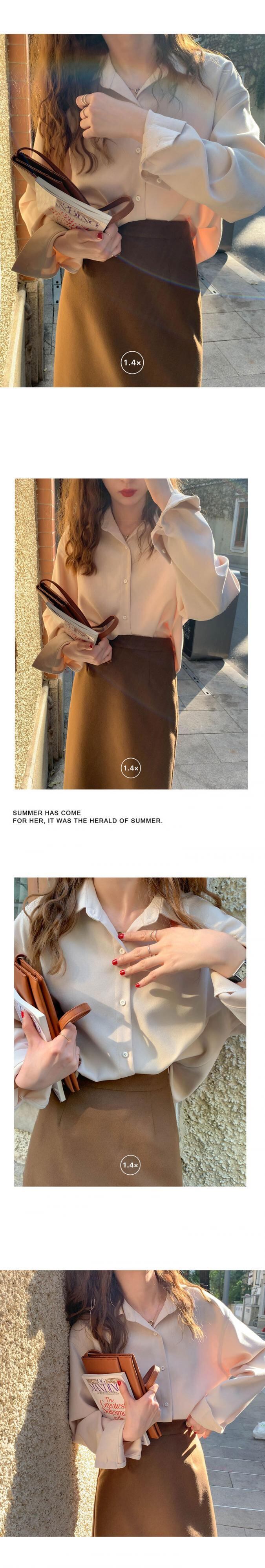 ソリッド カラーカジュアルシャツ ジャケット スプリングルーズ ロング 春物 ソリッドカラー kumikum15665708691