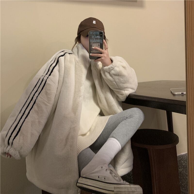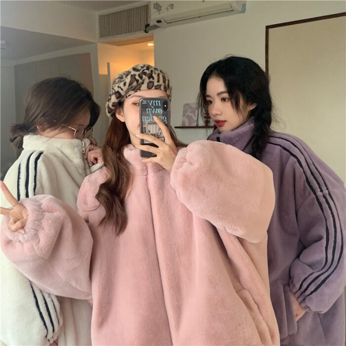 ウィンタースタイルカラージャケット サイドストライプカジュアルルーズ コットン 冬物 kumikum82021420987