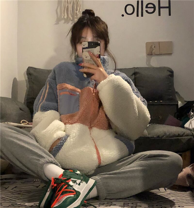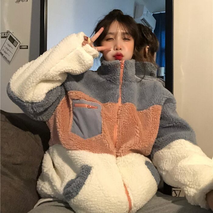 ルーズウールトップス レディースウィンターカラージャケット 冬物 ステッチ kumikum33860517100
