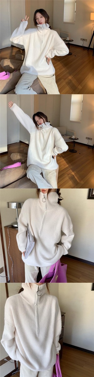 セーター スプリングスタイルジッパージャケット ルーズ ロング 春物 kumikum34733381605