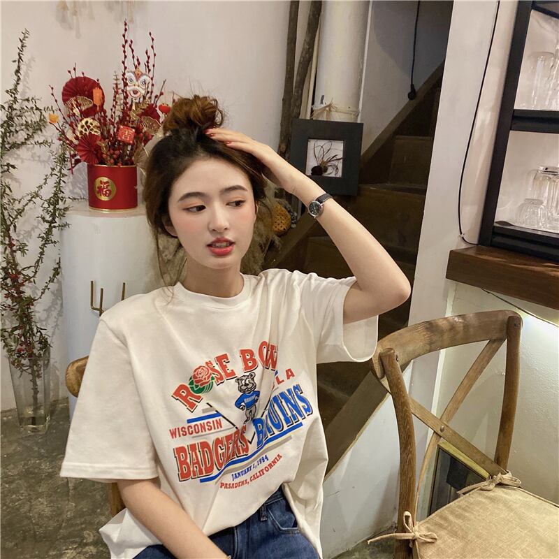 ルーズシャツ プリント柄Tシャツ スプリングカジュアルトップス 春物 kumikum41563283293