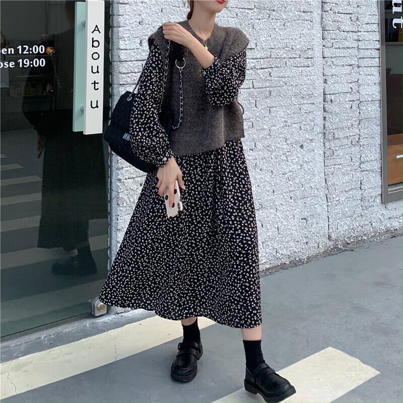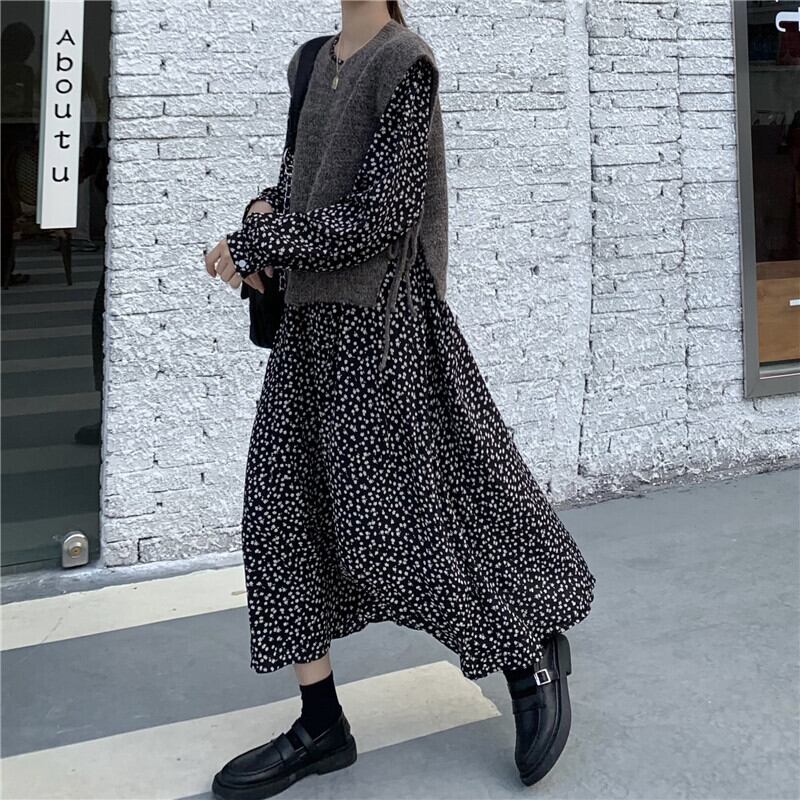 フローラルドレス レースニットオータムウィンターセット ロング 秋物 冬物 花柄 kumikum65773201852