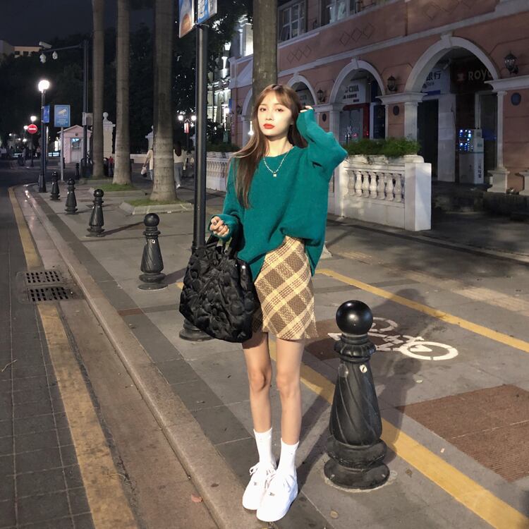 スタイルセーター セット オータムウィンター格子柄スカート 秋物 冬物 kumikum96180002669